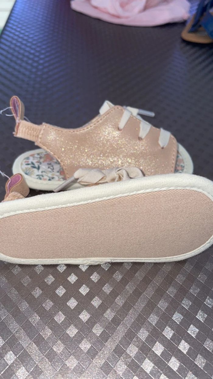 Chaussure style claquette / sandale bébé Taille 9/12 mois Couleur beige légèrement pailletés Réduction lot activée #magnounours_enfantfille9mois #magnounours_enfantfille12mois