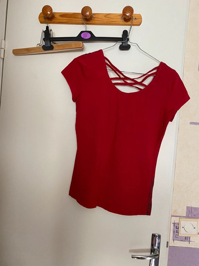 TEE shirt rouge gris Haut du dos ouvert Taille S Neuf