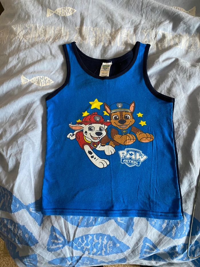 TEE shirt sans manches PAW PATROL Bleu et marine avec motifs Taille 7/8 ans 95% coton 5% elasthanne