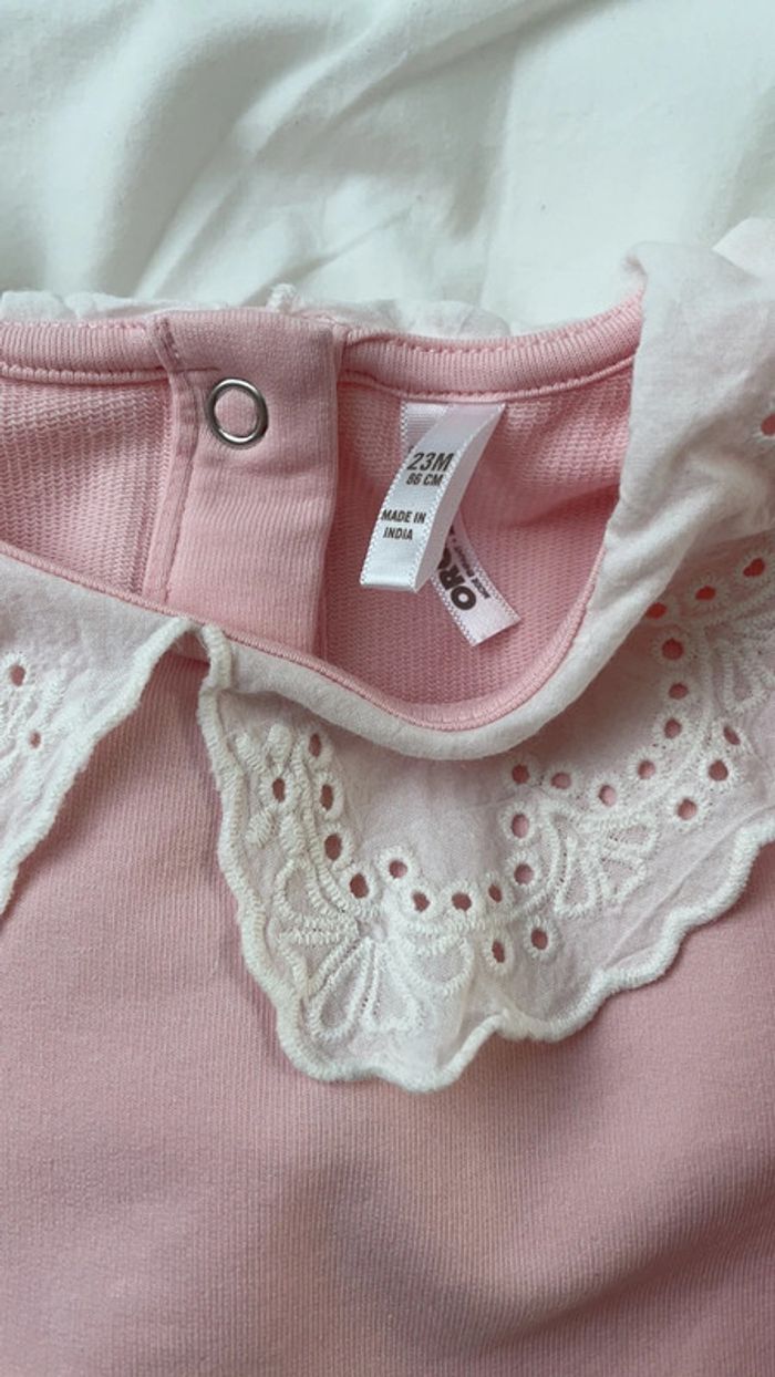 Pull rose avec col Claudine blanc Taille 23 mois (86cm) Marque Orchestra Réduction lot activée #magnounours_enfantfille23mois