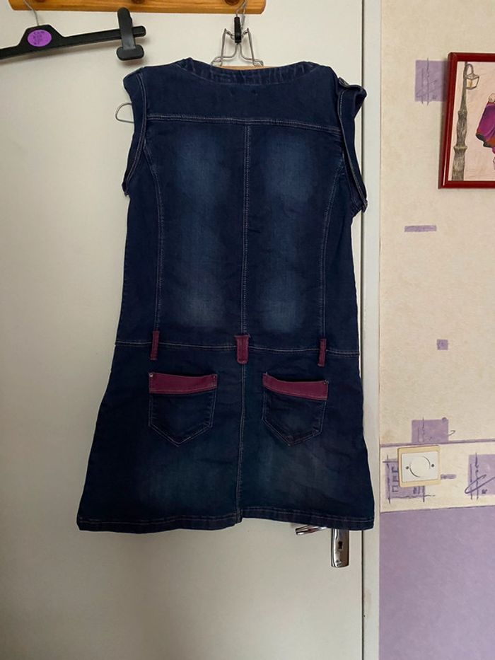 Robe en jeans bleu Taille 12 ans Okaidi 2 poches sur le haut devant 2 poches sur le bas devant 2 poches derrière Très peu porté 67 % coton 32% polyester 1% elasthame