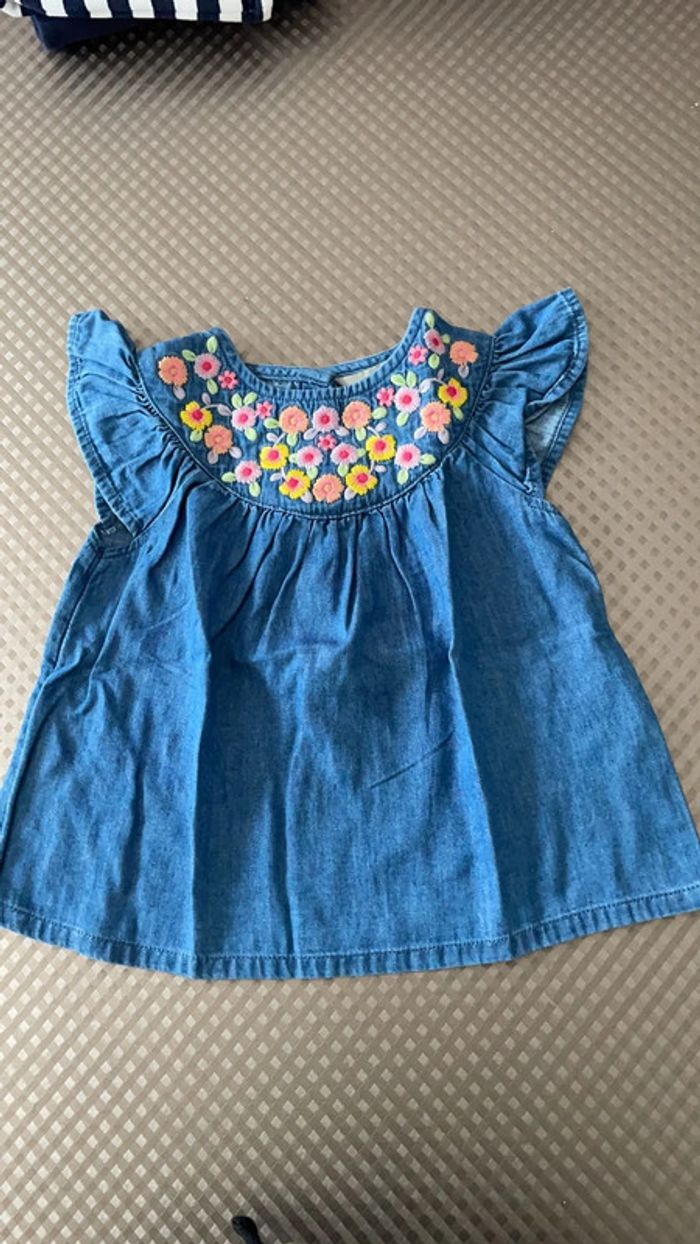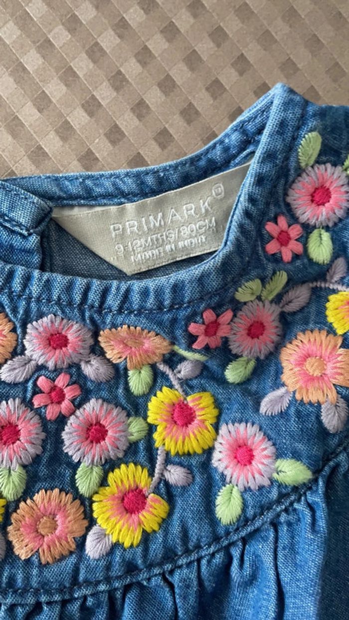 Blouse en jean avec col fleuri Marque Primark Taille 9-12 mois (80cm) Réduction lot activée #magnounours_enfantfille9mois #magnounours_enfantfille12mois