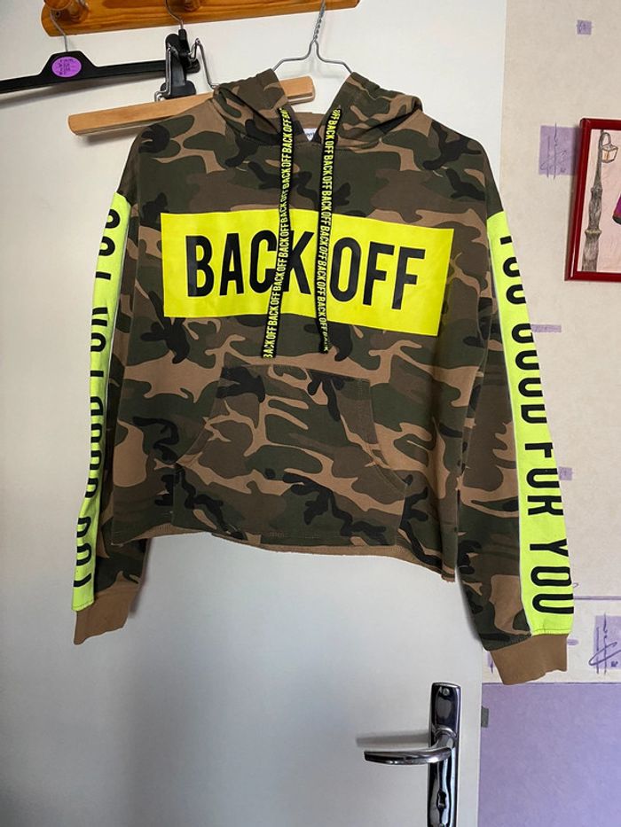 Sweat à capuche Camouflage Taille XS Jennyfer 3 petits défaut dans le milieu Voir les 2 dernières photos 30% coton 70% coton