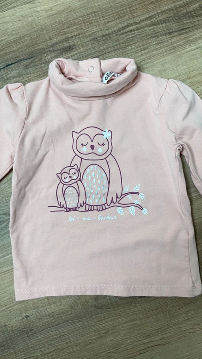 Teeshirt manches longues, col montant Couleur rose Marque Gémo Taille 18 mois Réduction lot activée #magnounours_enfantfille18mois
