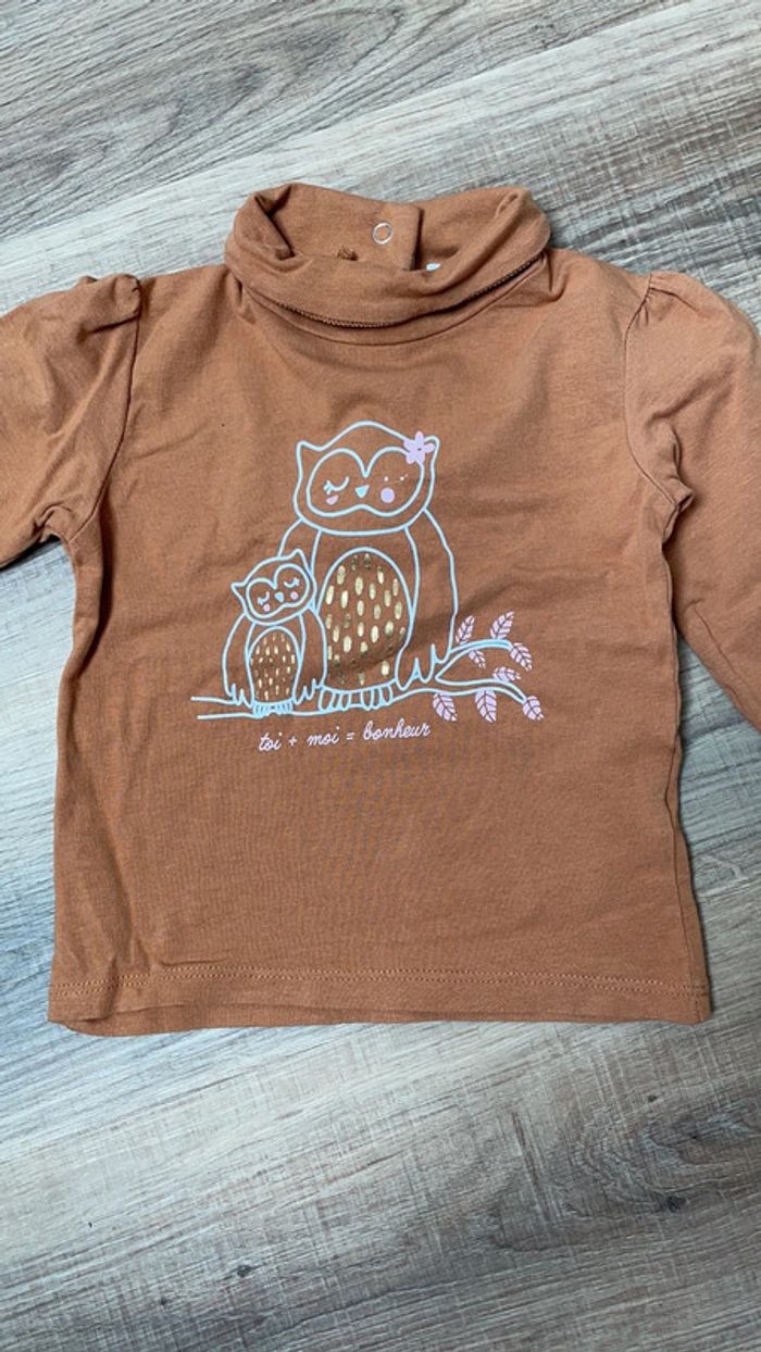 Teeshirt manches longues, col montant Couleur marron Marque Gémo Taille 18 mois Réduction lot activée #magnounours_enfantfille18mois