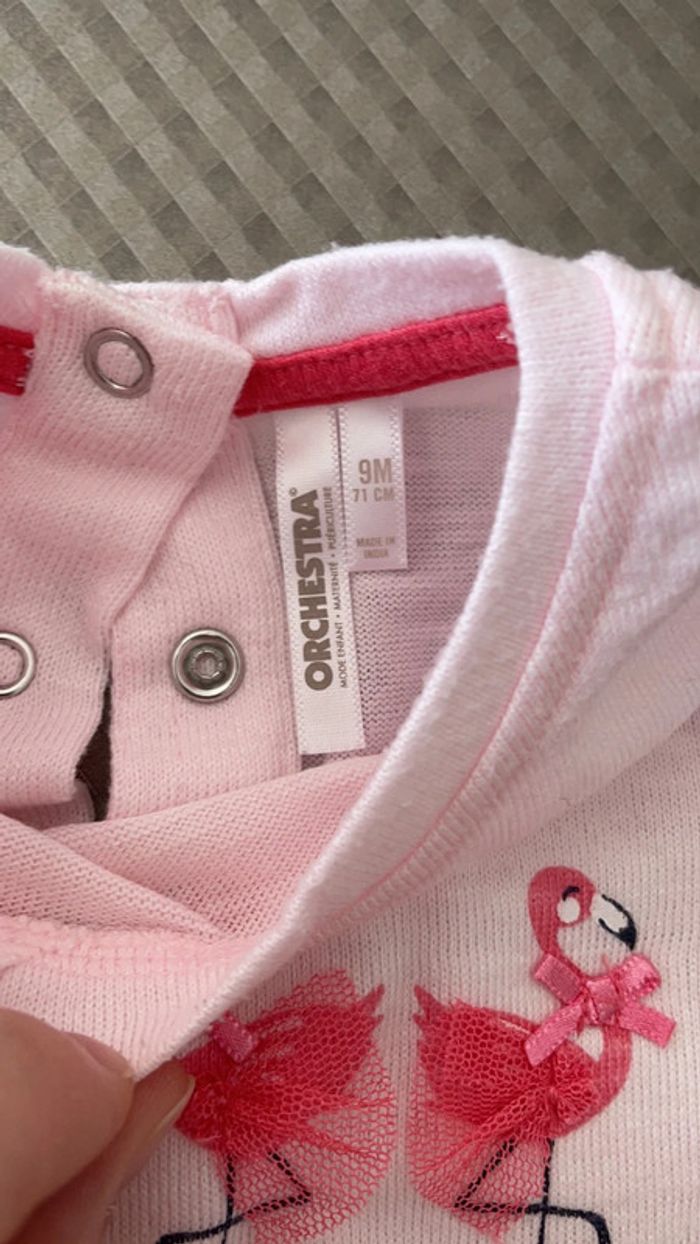 Teeshirt rose motif flamand rose Marque orchestra Taille 9 mois Réduction lot activée #magnounours_enfantfille9mois