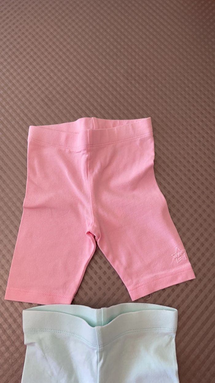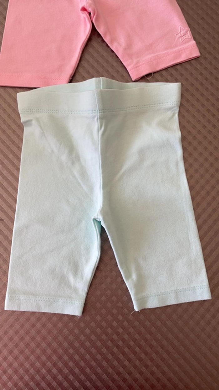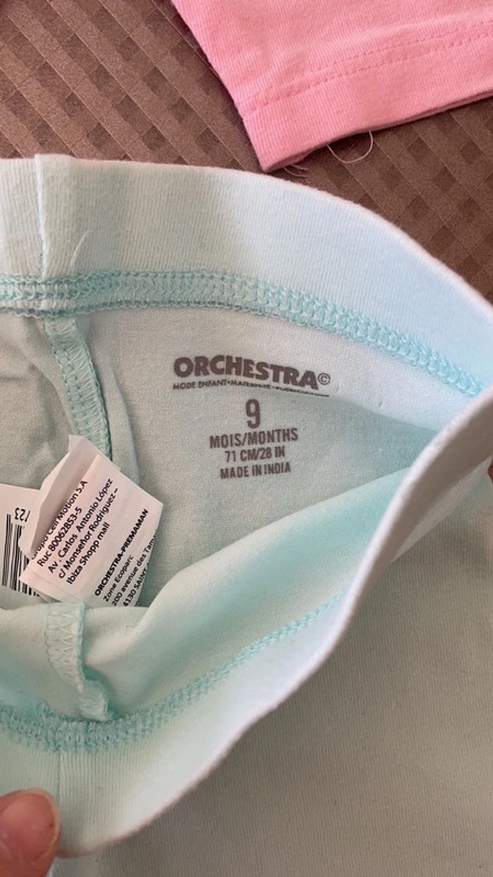 Lot de 2 leggings pantacourt Un rose et un bleu Marque orchestra Taille 9 mois (71 cm) Réduction lot activée #magnounours_enfantfille9mois