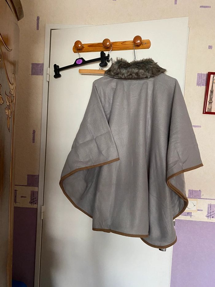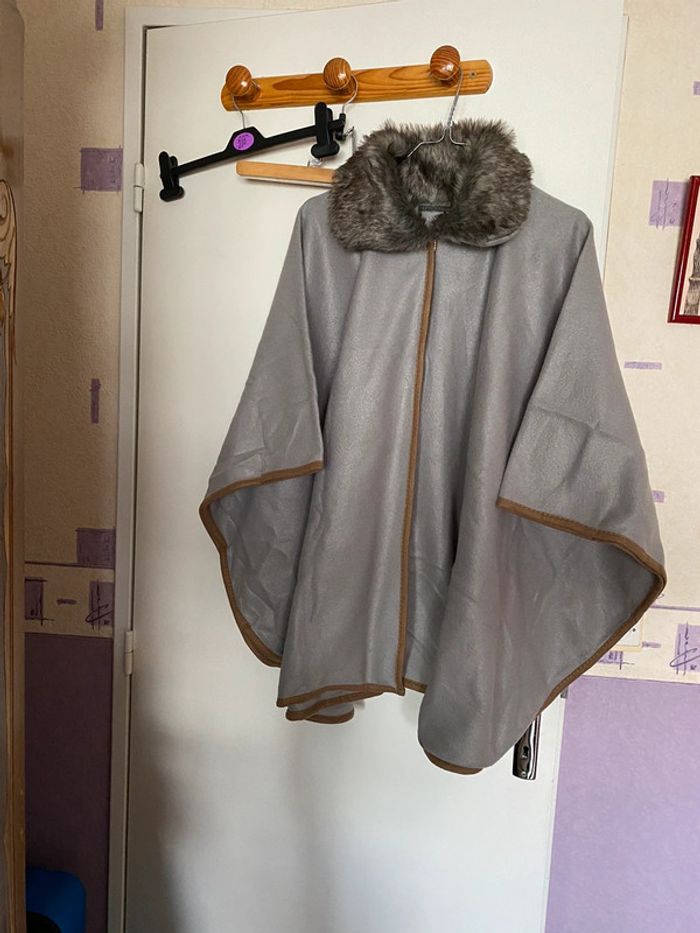 Cape neuve Grise marron Taille universelle Col avec moumoute 100% polyester