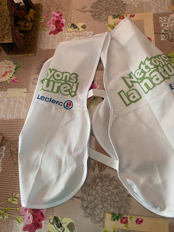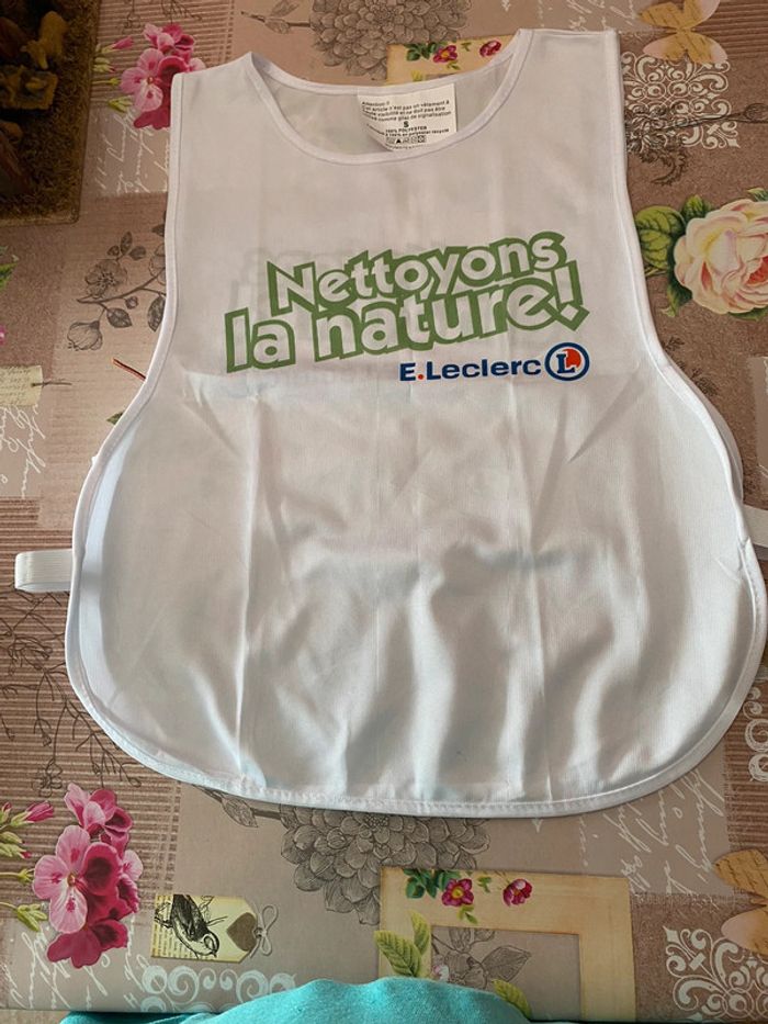 Gilet sans manches neuf Blanc vert bleu marine Ouvert des 2 côtés Ferme avec une bande élastique des 2 côtés 100% polyester Taille S Idéale pour protéger le vêtement du haut