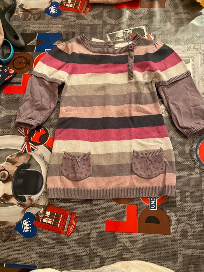 Robe pull avec manche 6 mois 2 petites poches devant Fermer avec boutons dans le dos 50 % coton 50% acrylique Tres peu porter