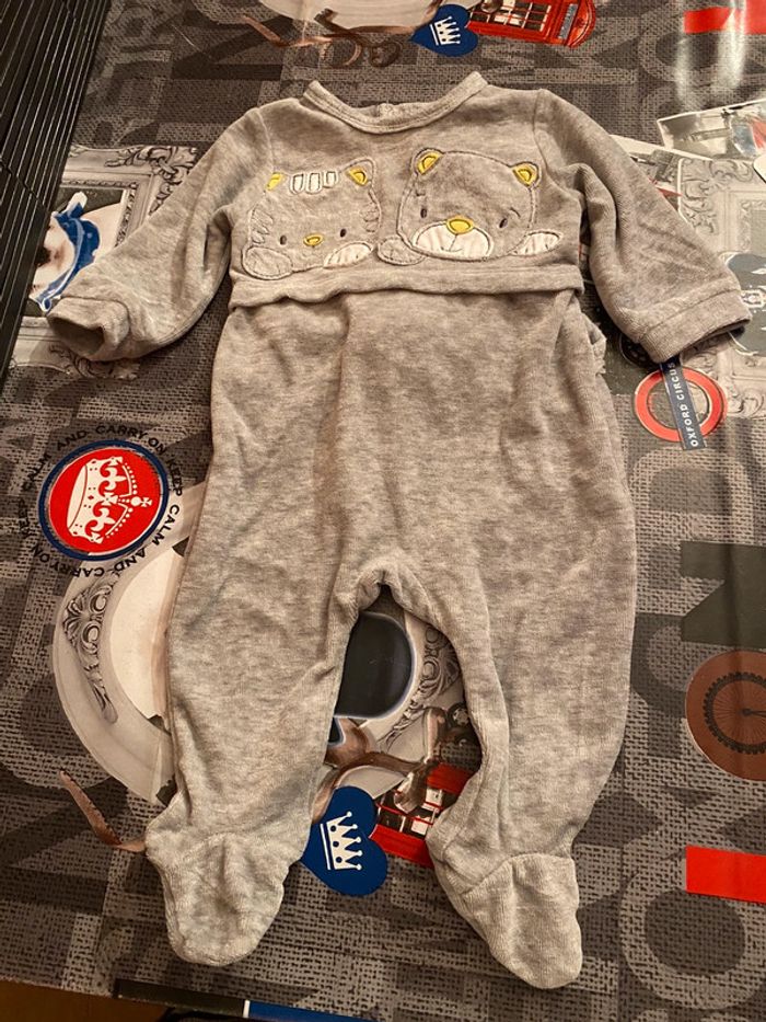 Pyjama velours gris jaune blanc neuf 3 mois 77% coton 25% polyester