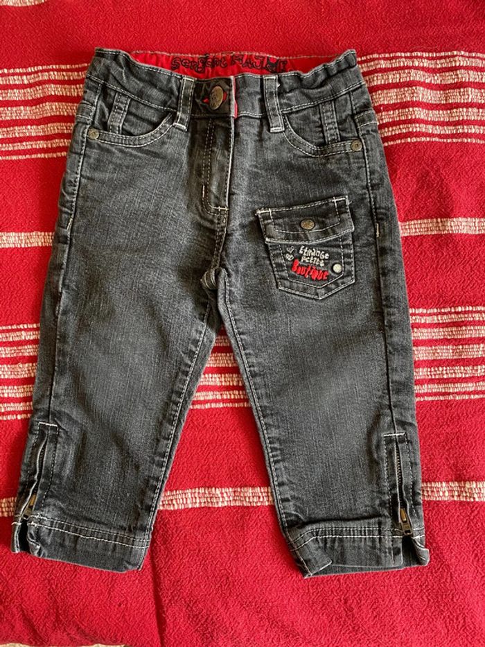 Pantalon noir Sergent major Fermeture sur les 2 cotés en bas des jambes Et une petite poche sur le devant d une jambe Taille 4 ans