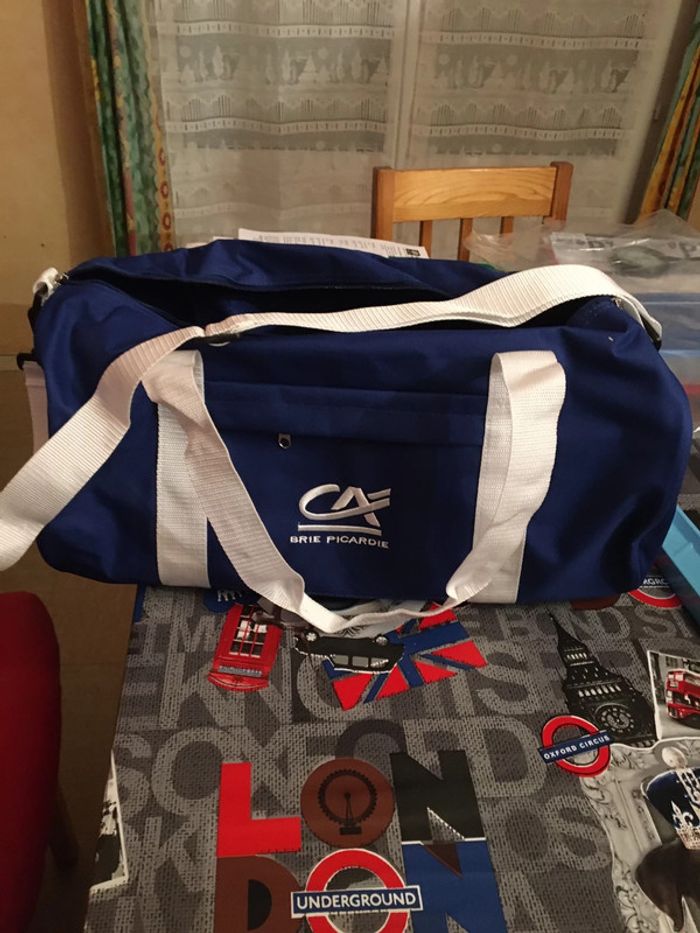 sac de voyage neuf bleu et blanc