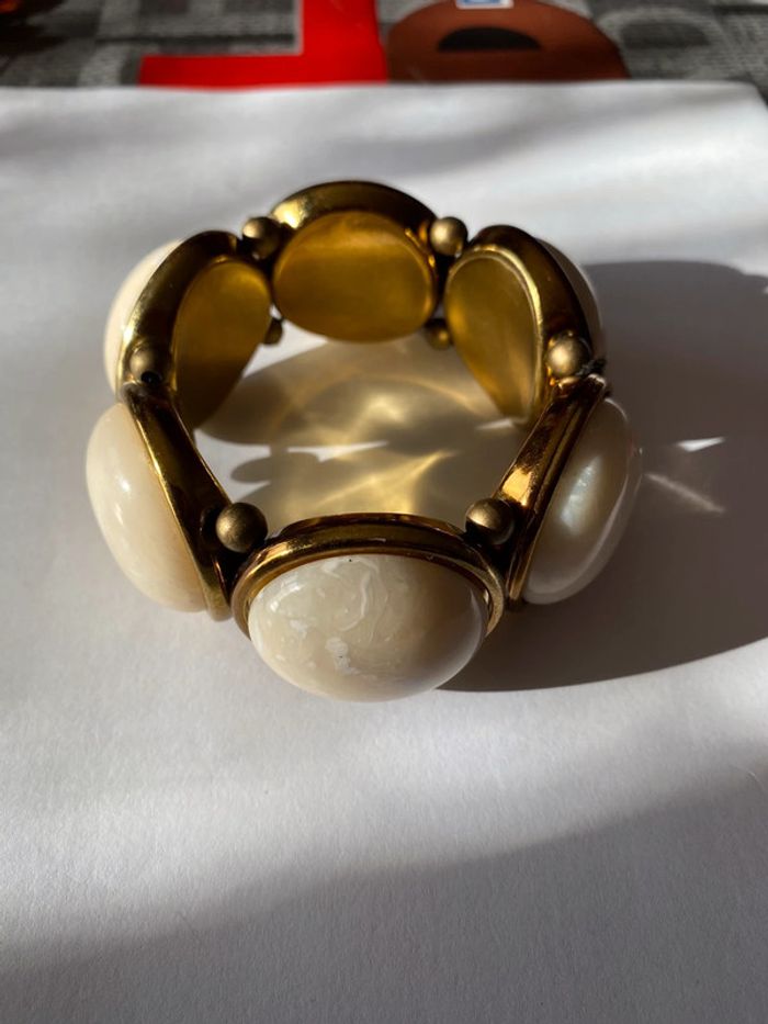 Bracelet élastique Boules couleur nacre crème