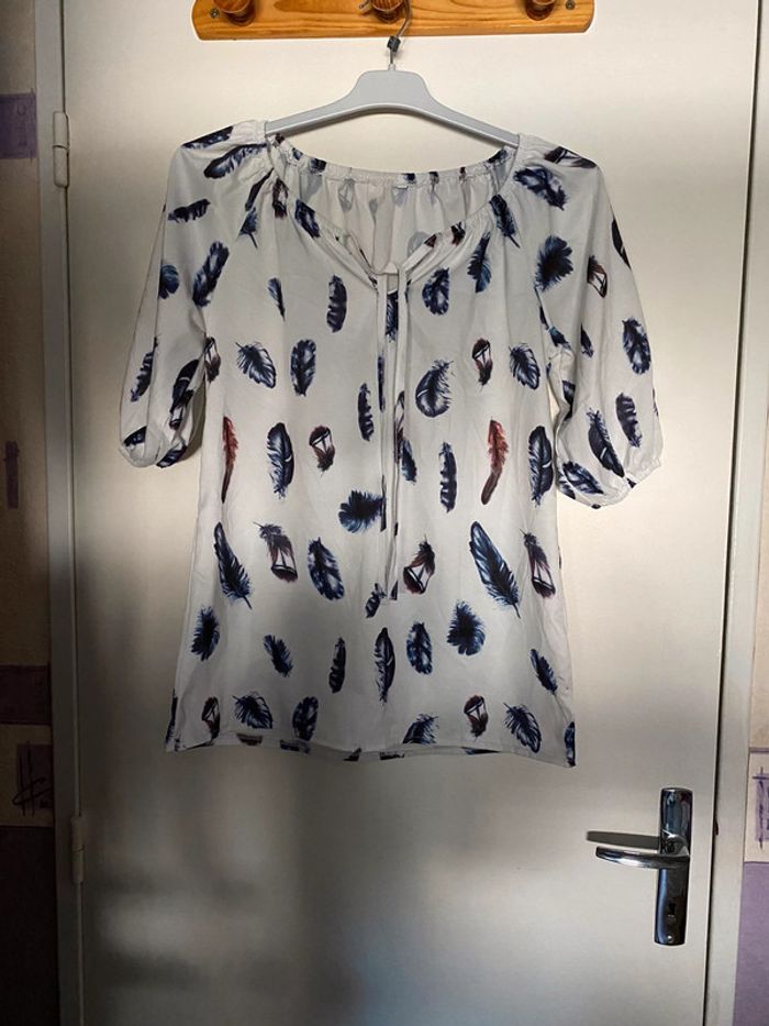 Chemisier manches courtes neuf Taille M Motifs des plumes 35 % coton 65% polyester