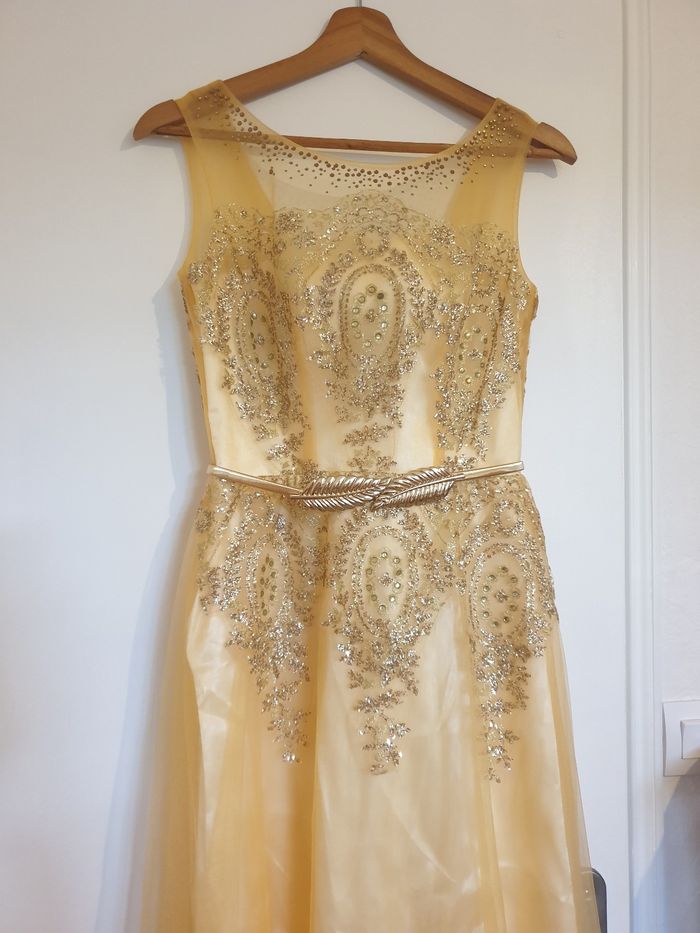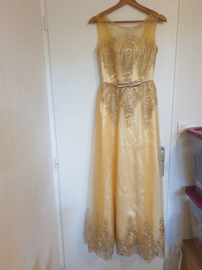 robe soirée longue neuve n'a pas était porter . taille s 36 . la ceinture n'est pas vendu avec la robe.