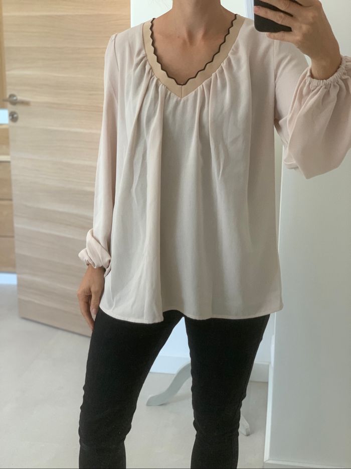 Blouse manches amples resserrées aux poignets Taille S/M Beige/rosee Neuf N’hésitez pas à faire un tour dans mon dressing pour profiter de réductions 😊 5% de réduction dés 3 articles achetés 10% de réduction dés 5 articles achetés
