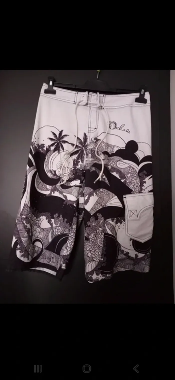 Bermuda Oxbow taille 38, imprimé noir/blanc stylé 🌴. Confortable et tendance, parfait pour la plage ou les sorties d’été. Excellent état ✔️. #fashionmode5908_T38 #Oxbow #Bermuda #Surfwear #Streetwear #Été #Taille38 #Casual #fashionmode5908_T38