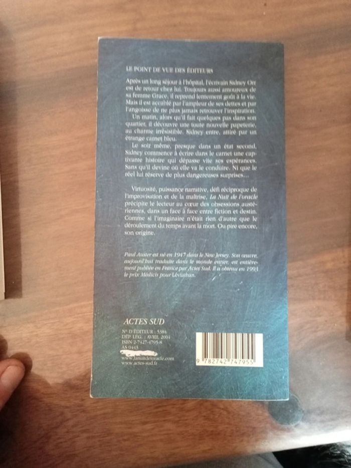 Livre Paul auster la nuit de l'oracle - photo numéro 2