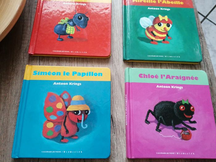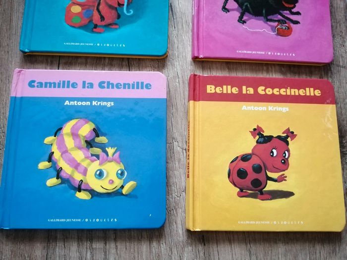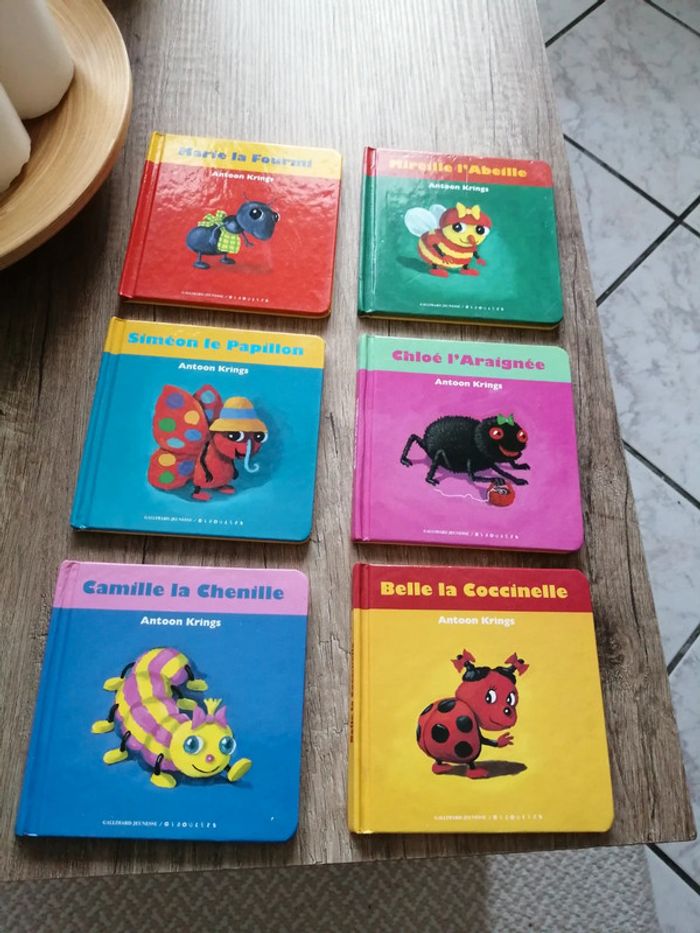 Lot de 6 albums en édition limitee. Siméon le papillon ( la dernière page à était scotchée) Camille la chenille Belle la coccinelle Chloé l' Araignée Mireille l'abeille Marie la fourmi Bon état général, ils ont beaucoup étaient manipulés, ma fille les adorés.