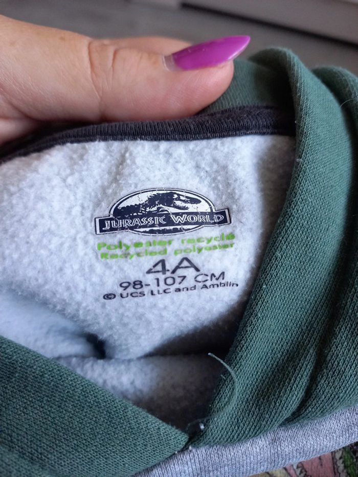 Très peu porté, une tâche en bas devant (voir photo) mais reste correct pas de trous #sweatacapuche #jurassicworld #sweatgarcon4ans #garçon4anscorinne1389