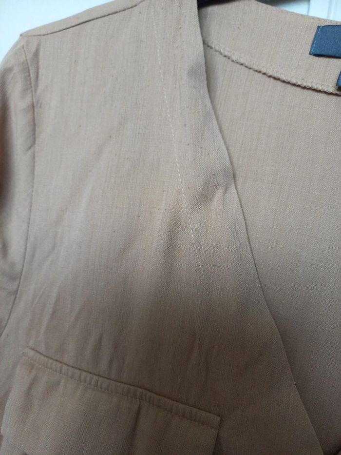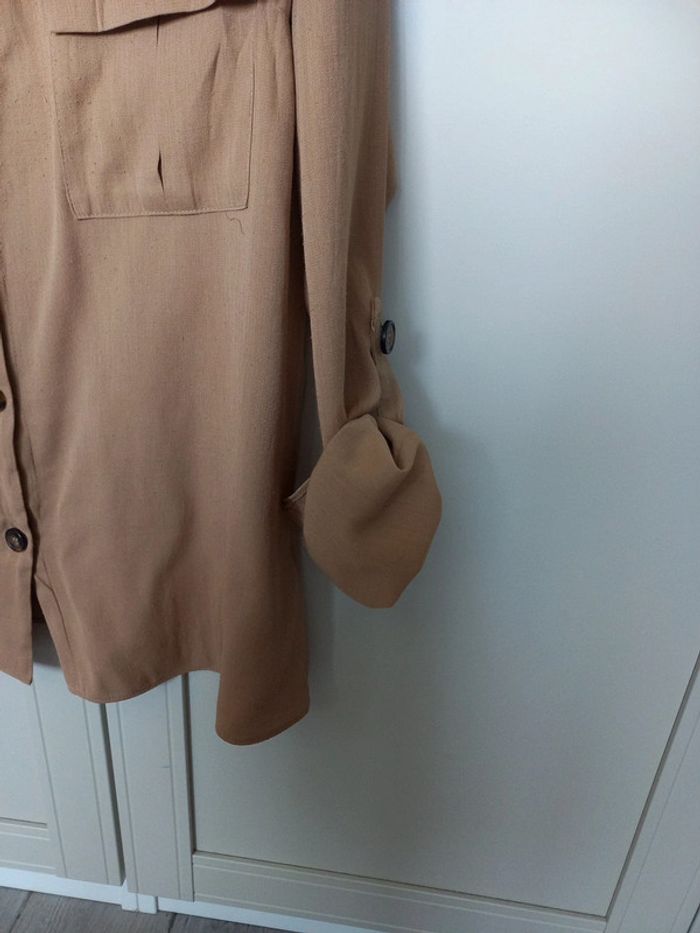 Petites bouloches sur le tissu ,pas de trou ,les manches peuvent se relevez et s'attacher avec la patte , #chemisefemme42 #primarkfemme #couleurcamelbeige #vêtementfemmecorinne1389