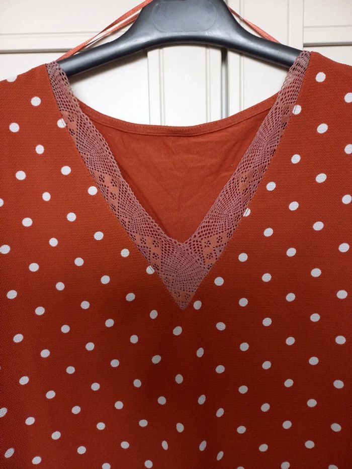 Blouse femme marron à pois blanc - photo numéro 3