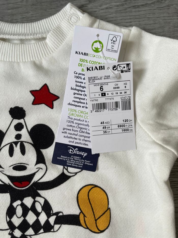 Pull Mickey blanc disney Kiabi Taille 6 mois Neuf avec étiquette