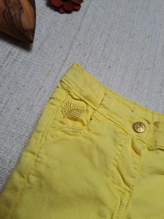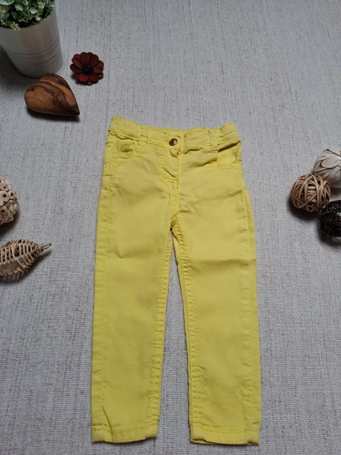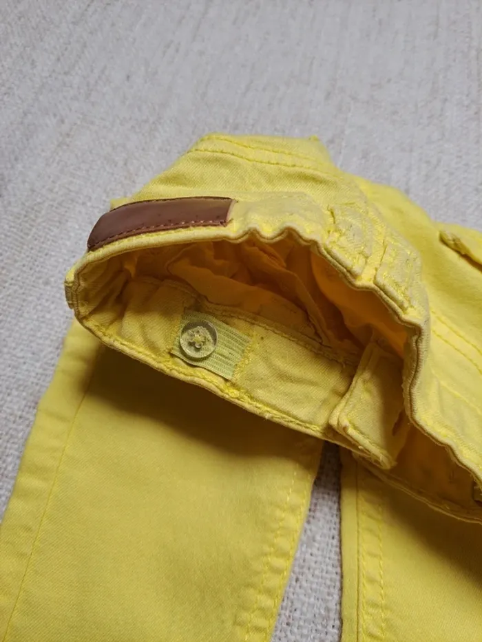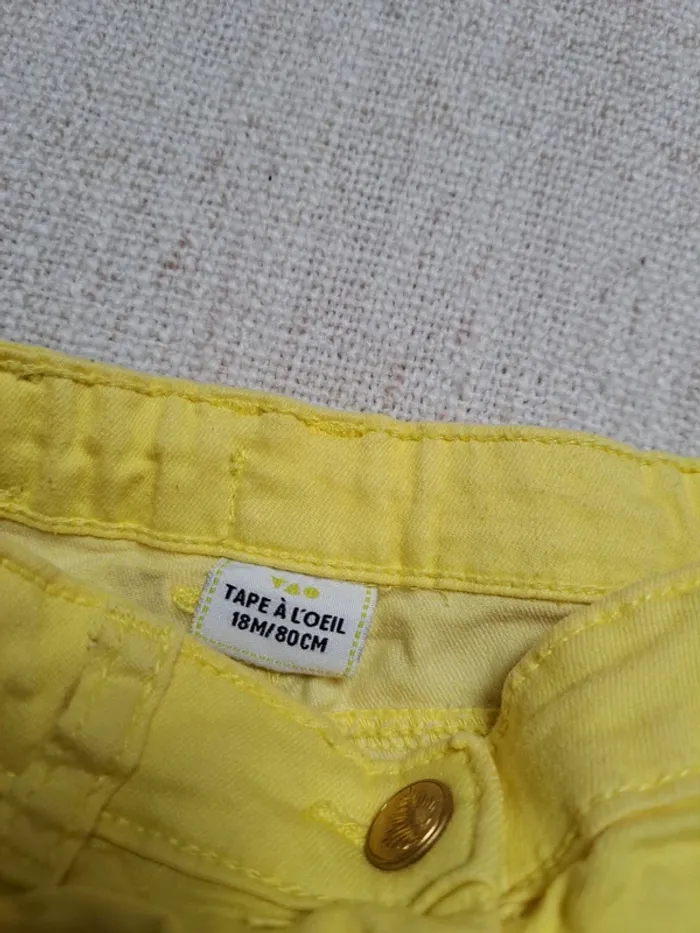 Jean Tape à l'œil en taille 18 mois. Il est jaune poussin avec de jolis détails dorés brodés au niveau des poches à l'avant et à l'arrière. Taille réglable. Très peu porté, il est en excellent état. Autres articles en même taille 🖱 #tea80cm #tea18mois Autres articles TAO 🖱#teatao #teatapealoeil #Jean #tapealoeil #tao