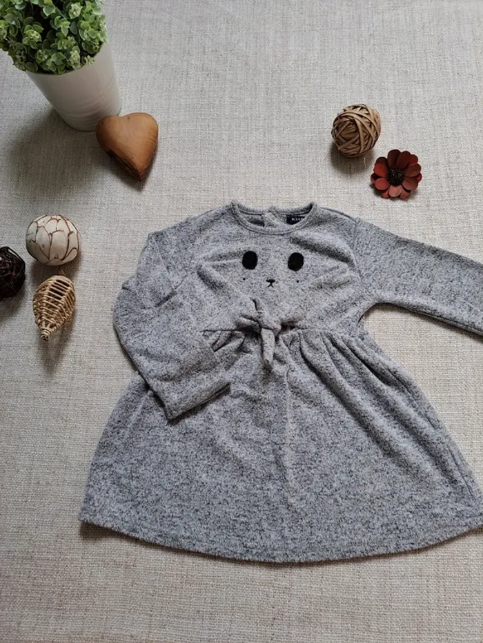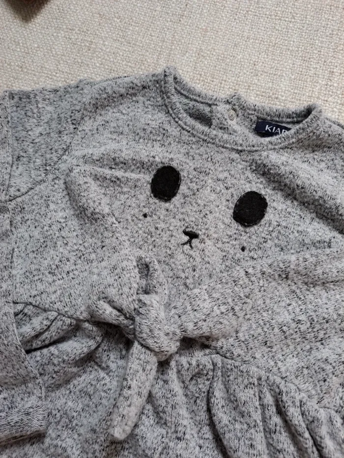 Robe chaude Kiabi en taille 18 mois. Parfaite pour l'hiver. Elle est gris chiné avec une petite tête d'ours. Nœud sur l'avant. Boutons pressions dans le dos. Peu portée, elle est en très bon état. Autres articles en même taille 🖱 #tea18mois #tea80cm Autres articles Kiabi 🖱 #teakiabi #robe #hiver #ourson #kiabi