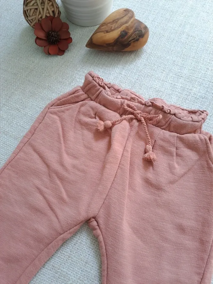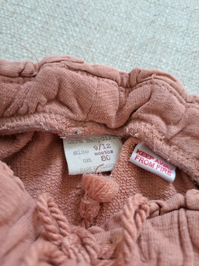Jogging Zara en taille 9-12 mois. Il est vieux rose. Cordon décoratif à la taille. Poches sur les côtés. Il a été beaucoup porté mais est toujours en bon état. Autres articles en même taille 🖱 #tea80cm #tea12mois Autres articles Zara 🖱 #teazara #jogging #zara