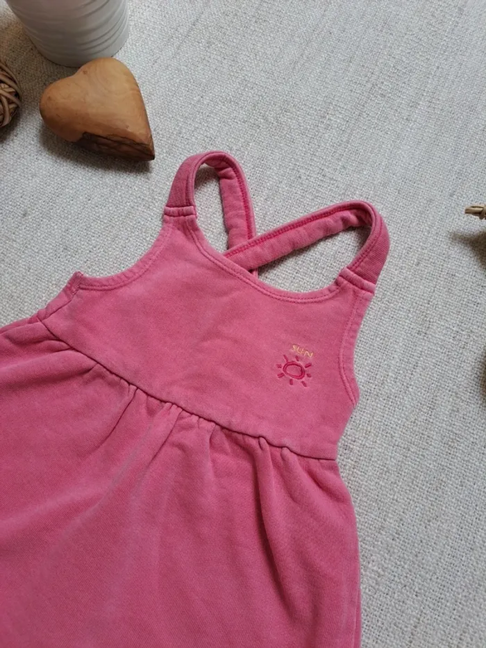Robe salopette Zara en taille 12-18 mois. Elle est rose foncé. Soleil et inscription Sun brodés sur le haut. Bretelles croisées dans le dos. En très bon état. Autres articles en même taille 🖱 #tea86cm #tea18mois Autres articles Zara 🖱#teazara #robe #ete #zara #sun