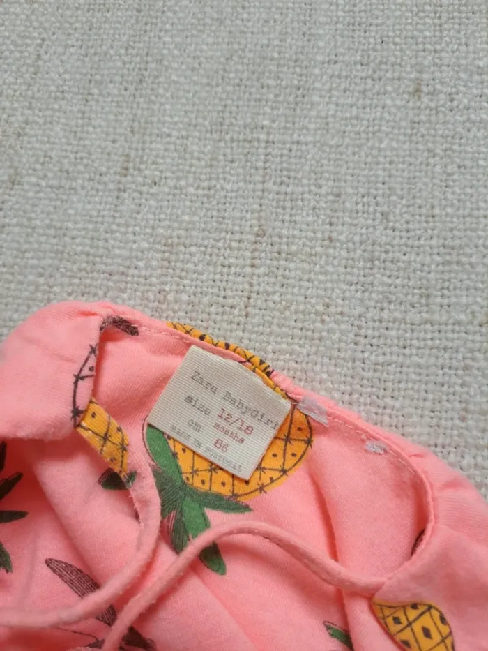 Robe Zara en taille 12-18 mois. Elle est rose corail fluo avec un imprimé ananas. Volant sur le haut. Légère, idéale pour l'été. En très bon état. Autres articles en même taille 🖱 #tea86cm #tea18mois Autres articles Zara 🖱 #teazara #robe #ete #ananas #zara