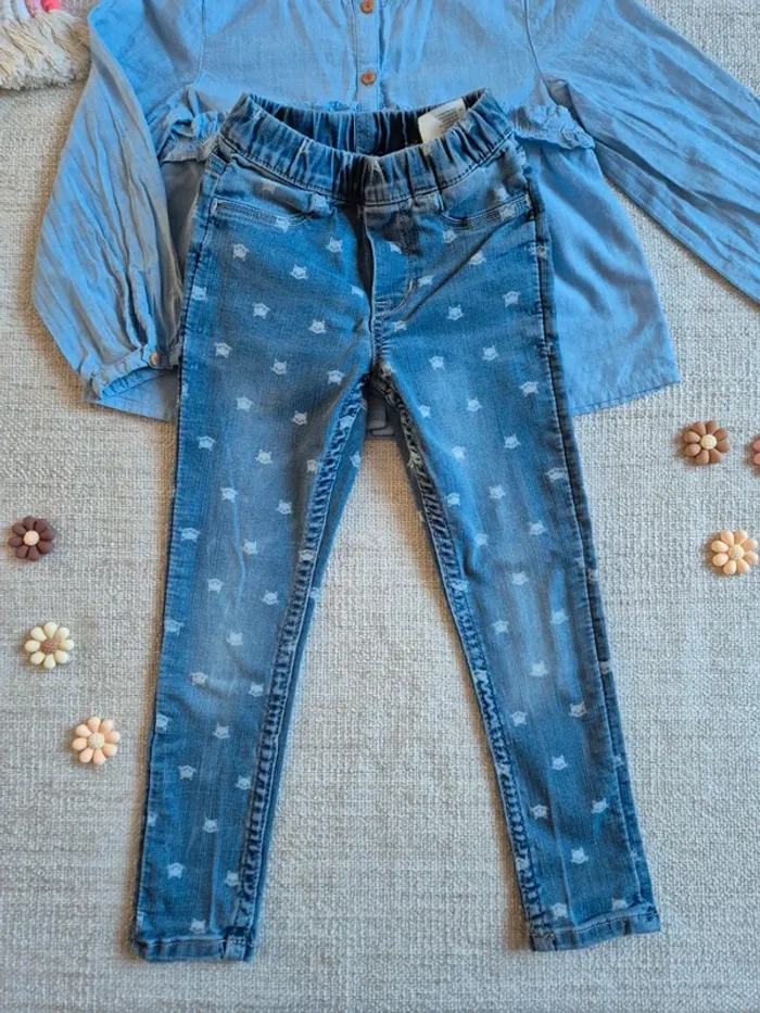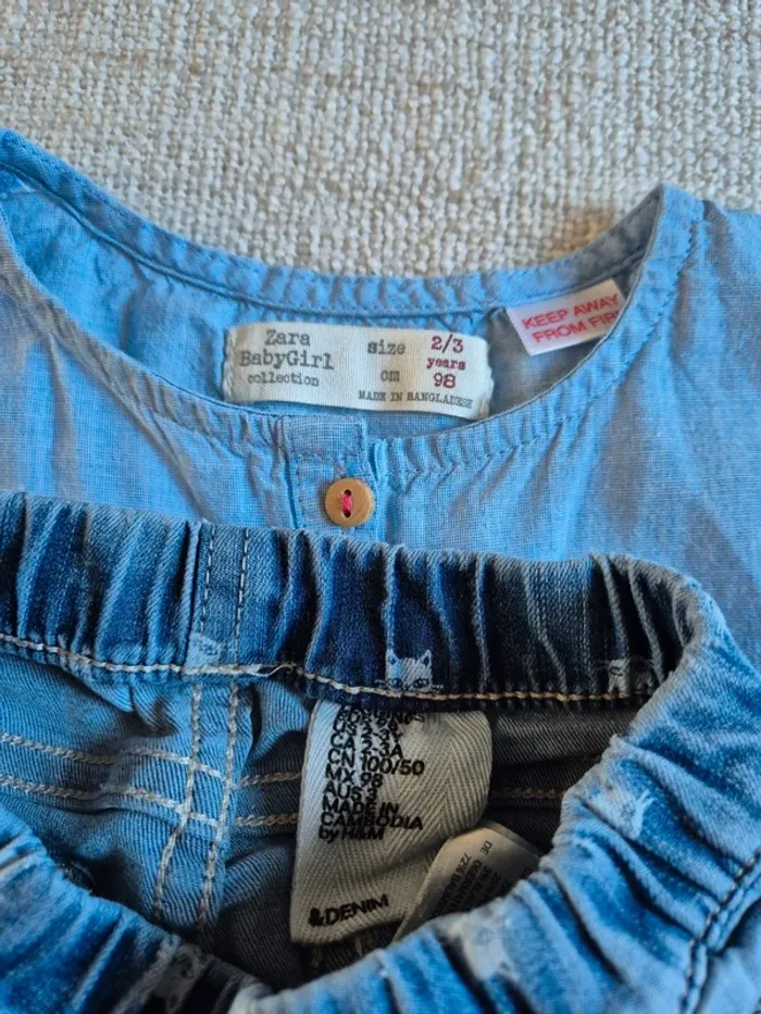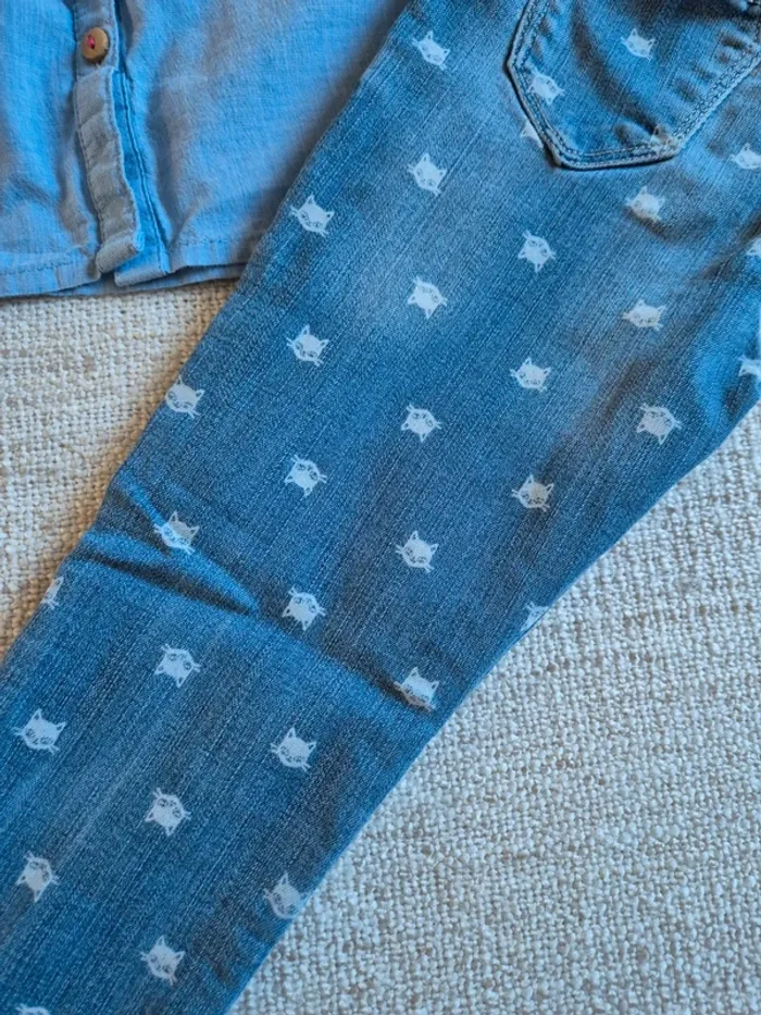 Album 98 - Zara & H&M - 7,50€ Ensemble Zara et H&M en taille 98. 💐 Blouse Zara bleu clair. Volants sur le haut. Boutons aspect bois sur l'avant. 💐 Jegging H&M. Il est bleu aspect délavé avec un imprimé chat. L'ensemble est en très bon état. Autres articles en même taille 🖱 #tea98cm #tea3ans Autres articles Zara et H&M 🖱 #teazara #teahm