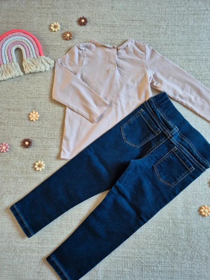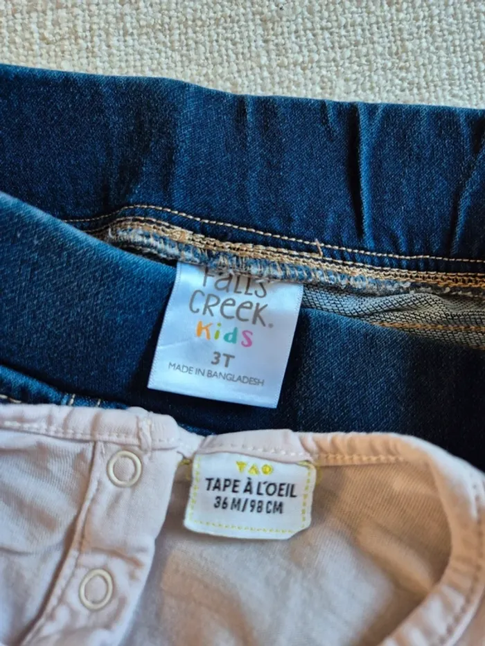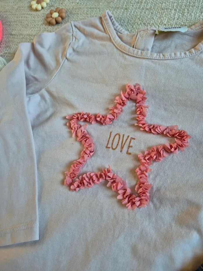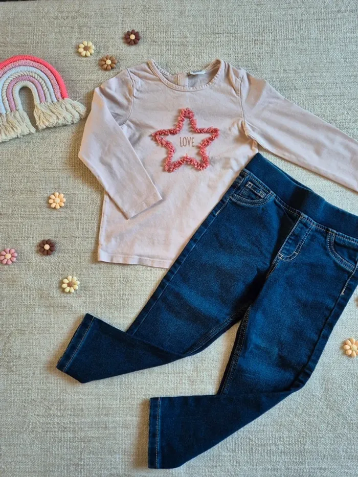 Ensemble en taille 3 ans. 💐 T-shirt manches longues Tape à l'œil. Il est rose pâle avec une étoile en relief et l'inscription Love en paillettes. Boutons pressions dans le dos. En très bon état excepté quelques petites traces très peu visibles (voir photos). 💐 Jegging neuf Creeks. Lavé mais jamais porté (je trouve qu'il taille grand). Autres articles en même taille 🖱 #tea98cm #tea3ans Autres articles TAO 🖱 #teatao #ensemble #tao #tapealoeil #étoile