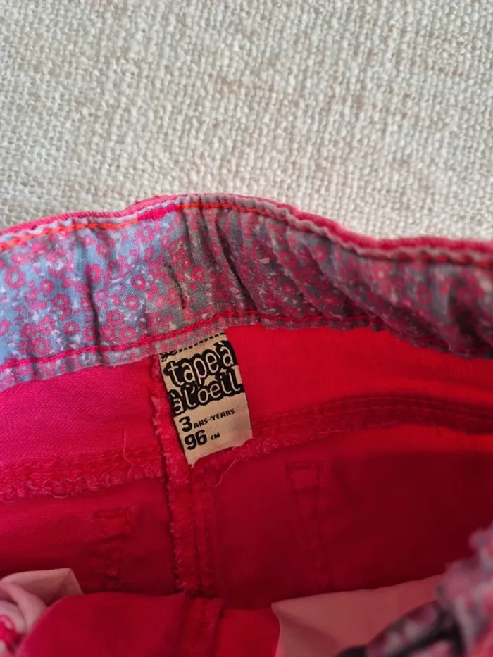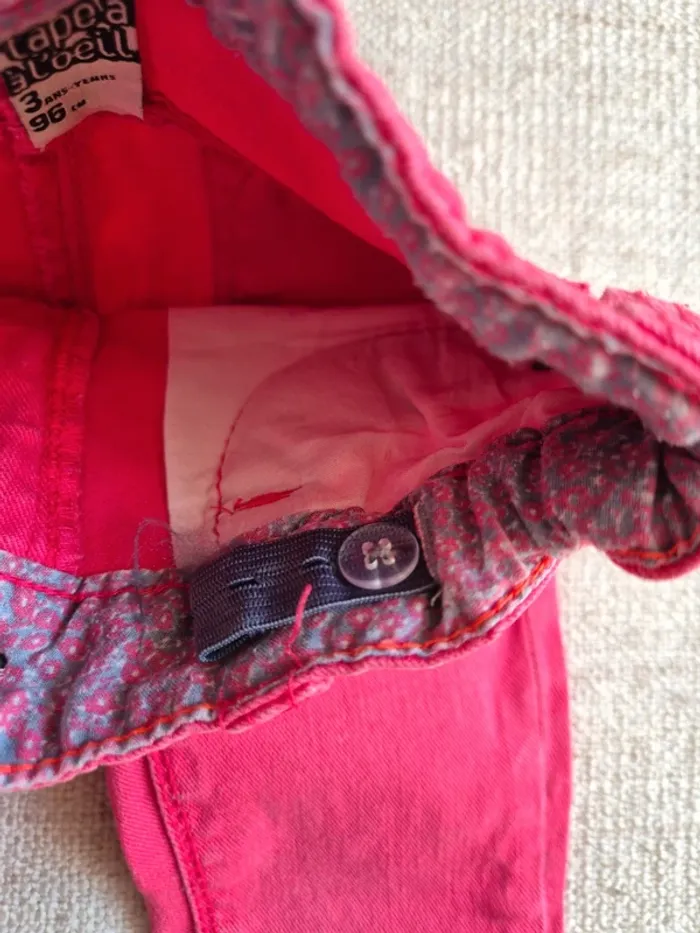 Jean slim Tape à l'œil en taille 3 ans. Il est rose foncé. Taille réglable. En très bon état. Autres articles en même taille #tea98cm #tea3ans Autres articles TAO 🖱 #teatao #jeanslim #tao #tapealoeil