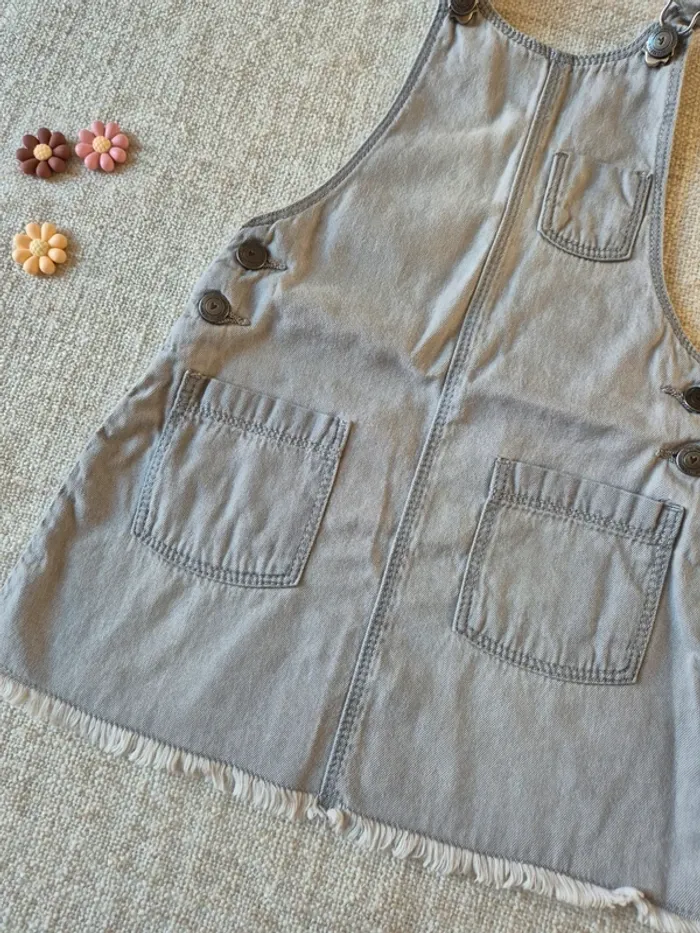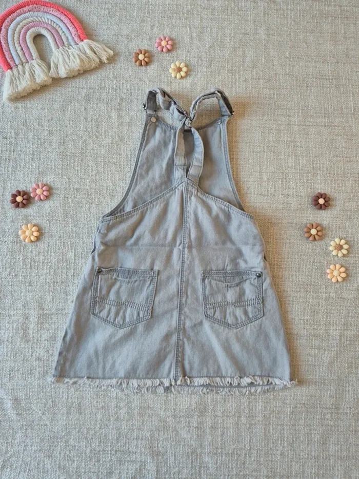 Robe salopette Tape à l'œil en taille 3 ans. Jean stretch gris. Aspect déchiré sur le bas. Poches sur l'avant et à l'arrière. Bretelles réglables. En excellent état. Autres articles en même taille 🖱 #tea98cm #tea3ans Autres articles TAO 🖱 #teatao