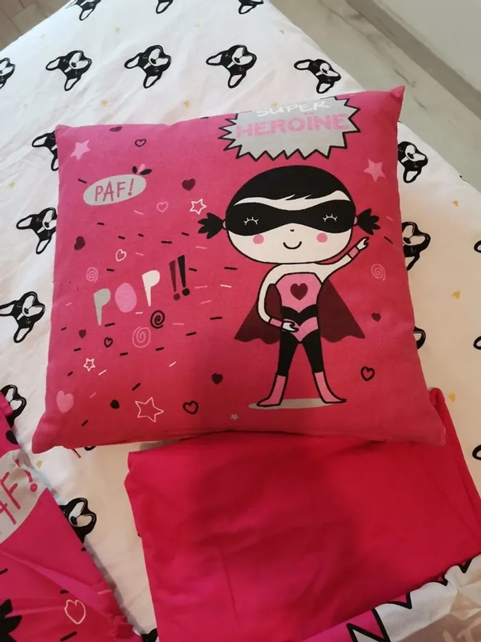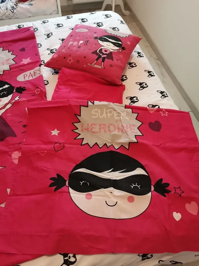 Parure de lit 5 pièces rose super Héroïne - photo numéro 1