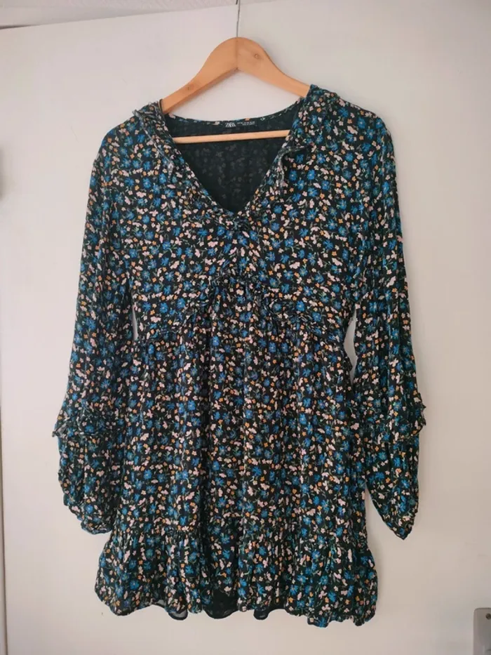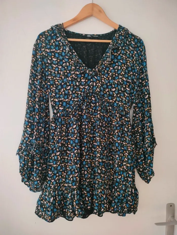 Robe 👗 fleurie bleue Zara XS - photo numéro 1