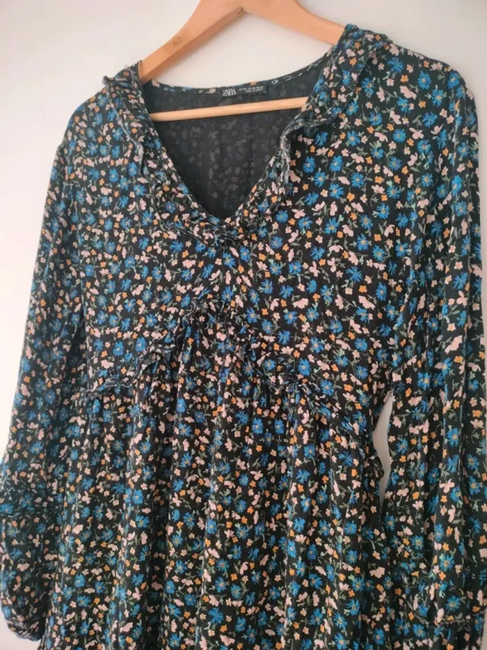 Robe 👗 fleurie bleue Zara XS - photo numéro 5