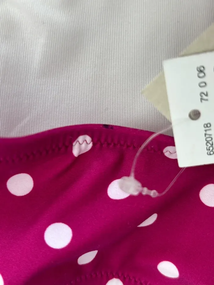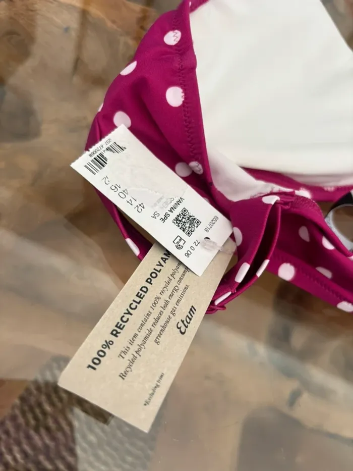 Haut de maillot de bain Etam Rose fushia à pois Coussinets amovibles Bretelles réglables Taille 42 Neuf. A noter la présence d'une petite tâche noire type stylo sur l'arrière du maillot. Se voit peu (voir dernière photo) N'hésitez pas à faire des lots ✨ réduction dès 2 articles (d'autres maillots de bain à vendre) Pour voir mes autres maillots de bain à vendre : #mdbludi2607 ✉️Pas de remise en main propre