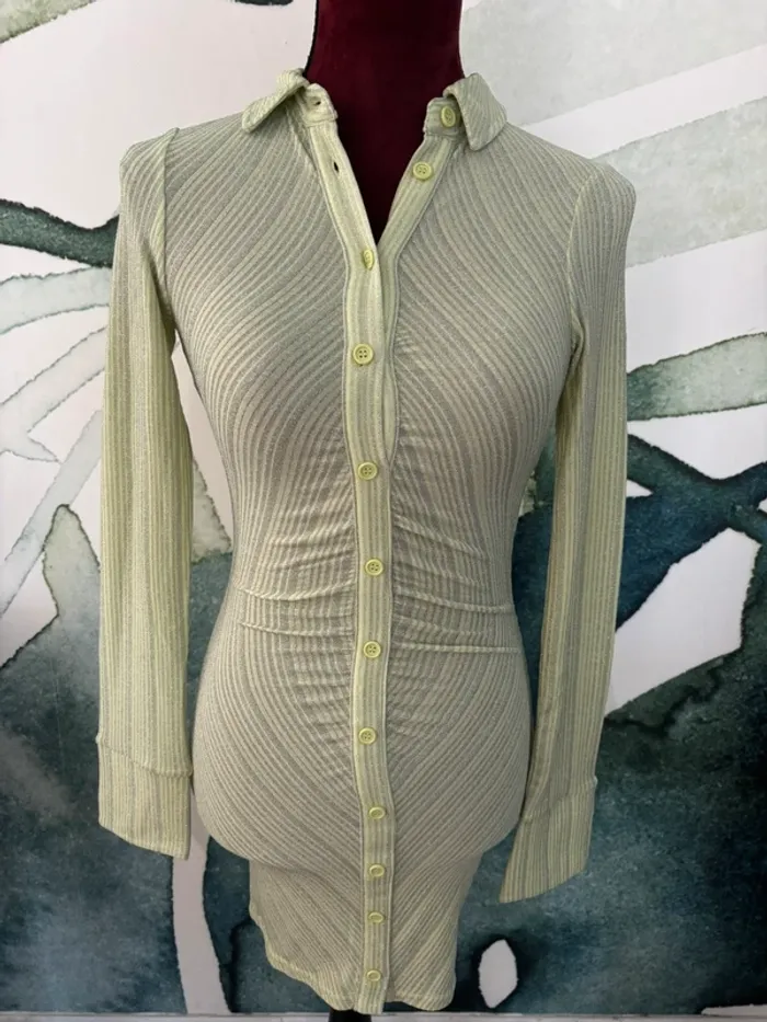 Robe manches longues H&M Type chemise Courte Vert et argenté Légère Taille XS Neuf Pour voir mes autres articles pour femme: #femmeludi2607 N'hésitez pas à faire des lots ✨ Réduction dès 2 articles ✉️Pas de remise en main propre