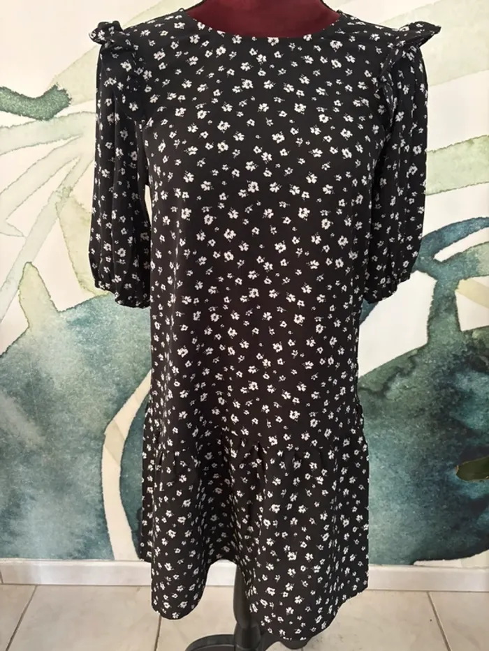Robe noir blanc fleurs été H&M - photo numéro 1