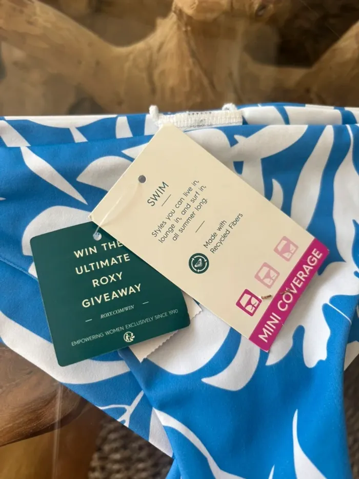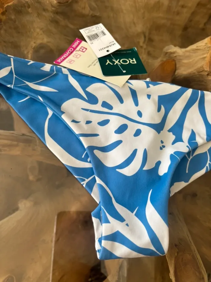 Bas de maillot de bain Roxy Mini coverage Bleu et blanc motifs feuilles tropicales Taille XS Neuf N'hésitez pas à faire des lots ✨ réduction dès 2 articles (d'autres maillots de bain Roxy à vendre) Pour voir mes autres maillots de bain à vendre : #mdbludi2607 ✉️Pas de remise en main propre