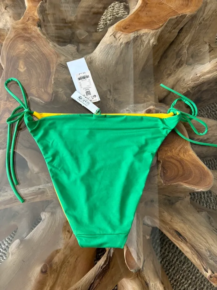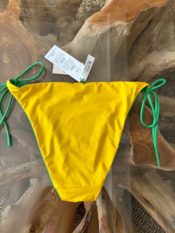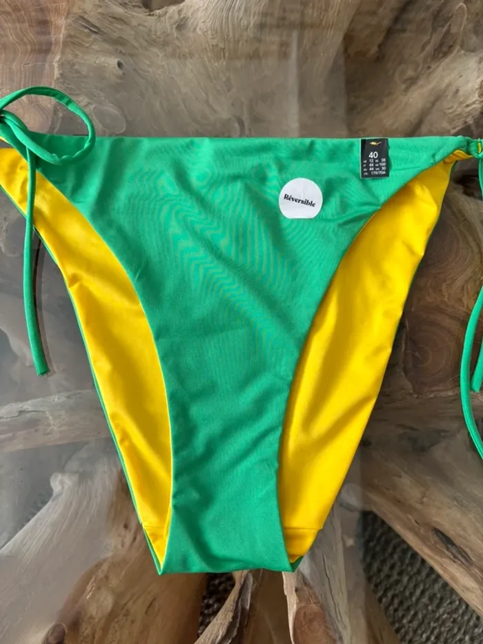 Bas de maillot de bain Etam réversible vert jaune ficelles - photo numéro 6