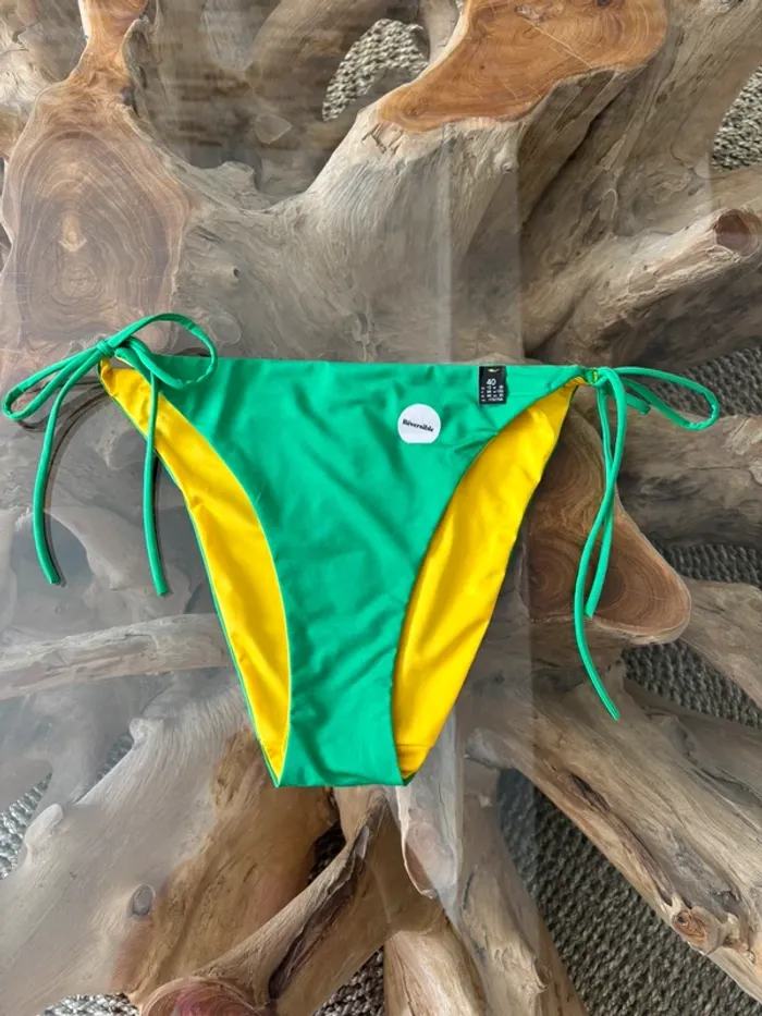Bas de maillot de bain Etam réversible vert jaune ficelles