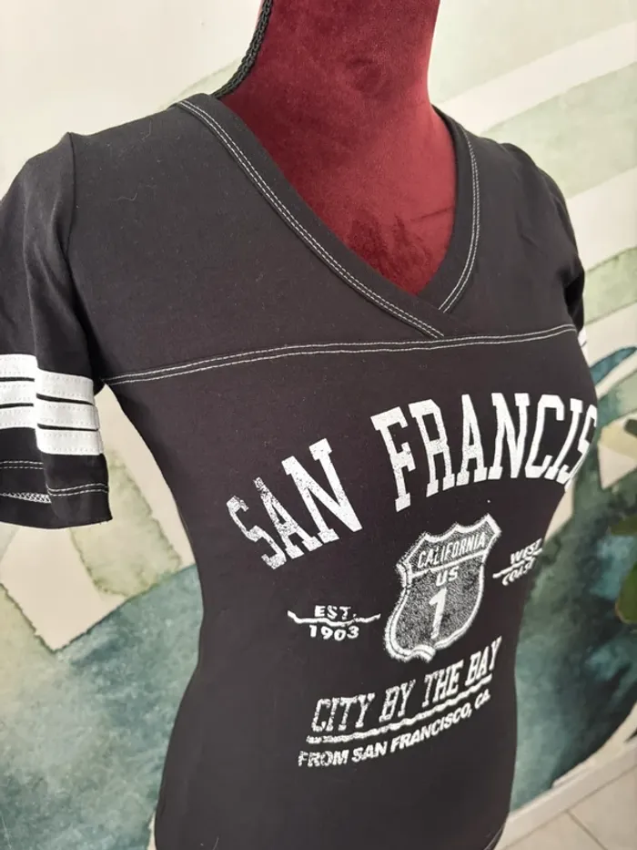 T shirt col V San Francisco California Acheté aux USA Matière agréable XS Très bon état, peu porté Pour voir mes autres articles pour femme et ados : #femmeludi2607 N'hésitez pas à faire des lots ✨ Réduction dès 2 articles ✉️Pas de remise en main propre