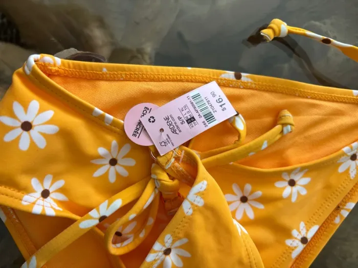 Bas de maillot de bain Ardene Swim Jaune orangé motifs fleurs Réglable avec les ficelles Taille S Neuf avec étiquette N'hésitez pas à faire des lots ✨ réduction dès 2 articles (d'autres maillots de bain à vendre) Pour voir mes autres maillots de bain à vendre : #mdbludi2607 ✉️Pas de remise en main propre
