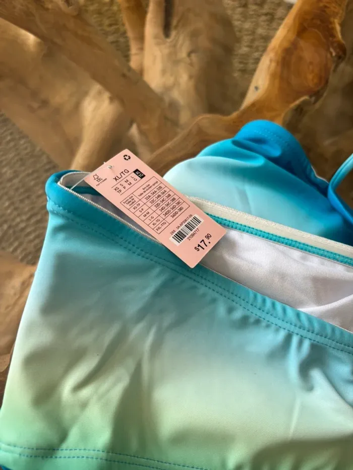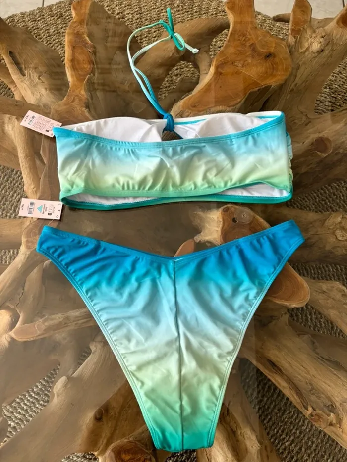 Maillot de bain 2 pièces Ardene Swim Dégradé bleu blanc vert Taille XL Haut : bandeau. Coussinets amovibles Bas : échancré Neuf Pour voir mes autres maillots de bain à vendre : #mdbludi2607 N'hesitez pas à faire des lots ✨ Réduction dès 2 articles ✉️Pas de remise en main propre