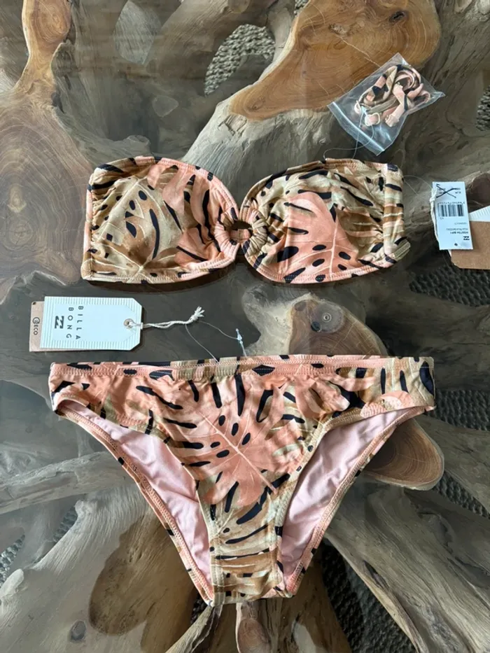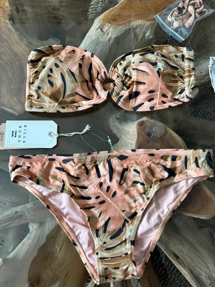 Maillot de bain 2 pièces Billabong Modèle Hula Palm Haut : Plusieurs positions dans le dos pour le réglage .Coussinets amovibles. Forme bandeau. Bretelles fournies. Bas : lowrider full coverage Taille XS Neuf avec étiquette. Prix neuf de l'ensemble : 83€ Possibilité de vendre les articles séparément (me contacter) N'hésitez pas à faire des lots ✨ réduction dès 2 articles (d'autres maillots de bain Billabong à vendre) Pour voir mes autres maillots de bain à vendre : #mdbludi2607 ✉️Pas de remise en main propre